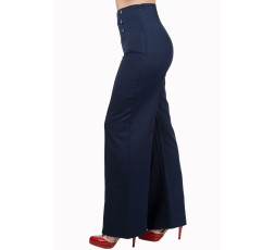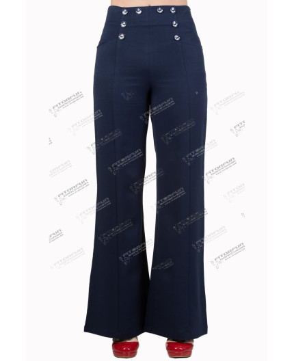 Damenhose im 40er Vintage-Stil hoch taillierter Schnitt - Bein leicht weit geschnitten mit dekorativen Knöpfen mit weißer Anker Prägung...